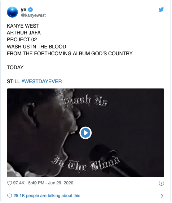 Ayant fait l’actu au cours de ce dernier mois notamment en offrant 2 millions à la fille de George Floyd afin de financer ces études. De plus, il y a deux jours de cela Kanye West a annoncé un partenariat avec la marque Gap qui devrait voir le jour en 2021 avec une ligne de vêtement conçu par Kanye West. Aujourd’hui, l’artiste enfile sur sa casquette de musicien pour nous proposer le clip de son single « Wash Us In The Blood » en feat avec Travis Scott assurant les backs du refrain. Ce single est le premier extrait de son prochain album « God’s Country« .